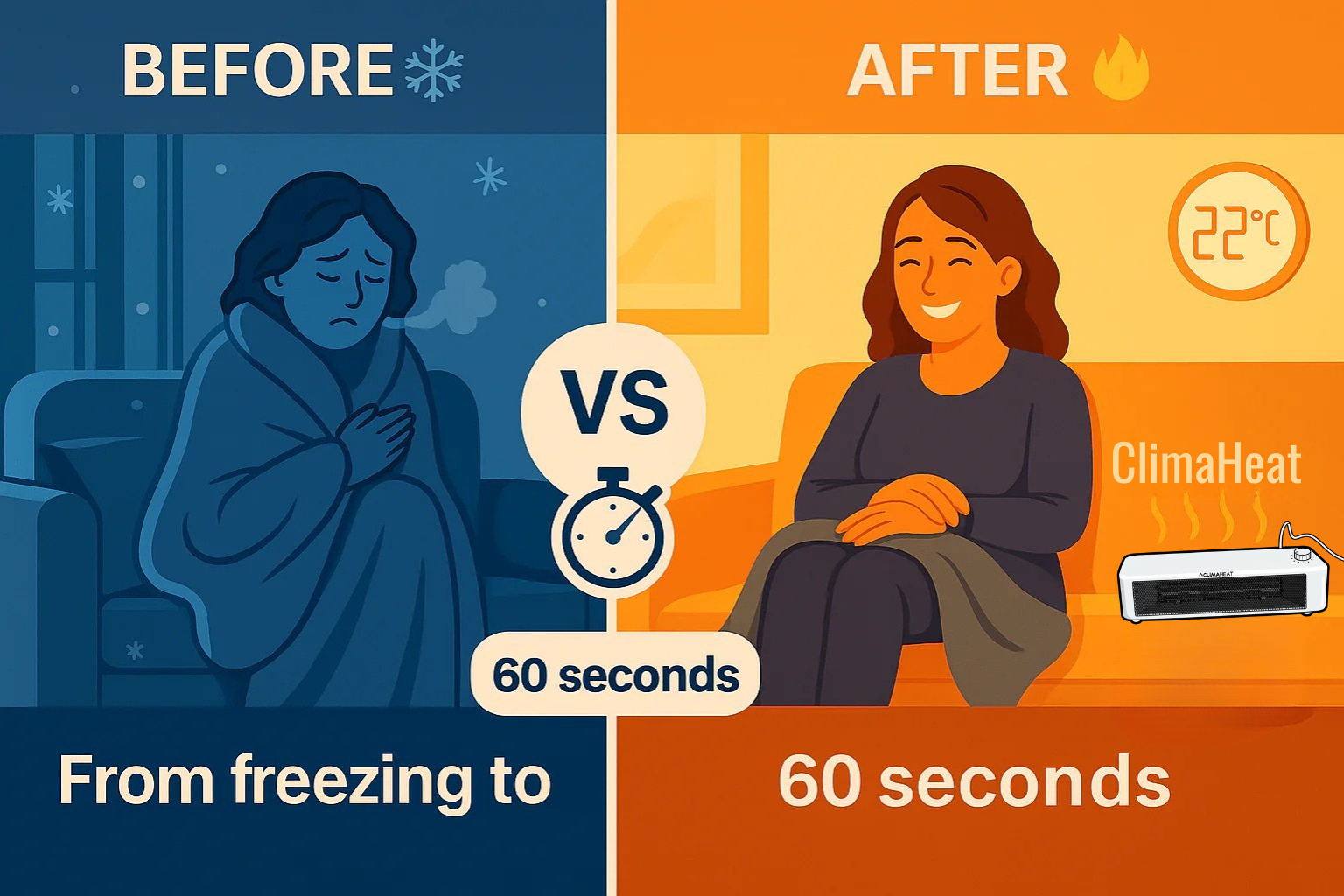 How Climaheat Pro transforms an ice-cold room into a warm haven in 60 seconds