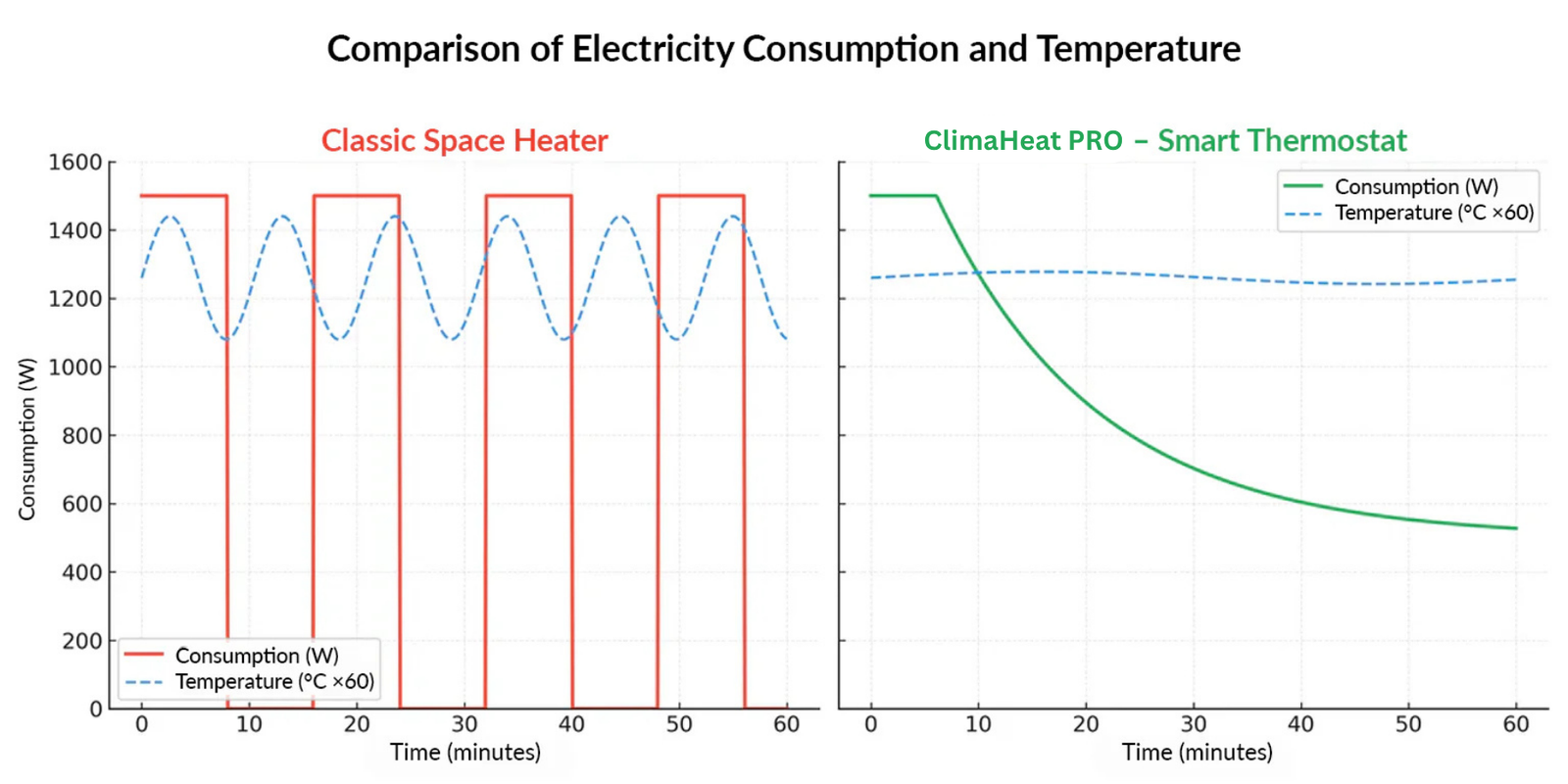Climaheat Pro, on the other hand, constantly adjusts its power to maintain exactly the temperature you’ve chosen.